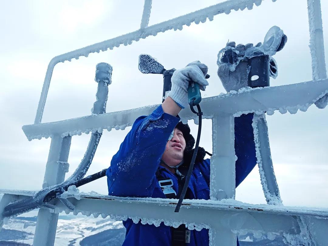 在遼寧昌圖天橋山項目,面對大雪降溫天氣,全體員工為保障風(fēng)電機(jī)組安全正常運(yùn)行,合力推車前往機(jī)位搶修。為恢復(fù)機(jī)組正常運(yùn)行,運(yùn)維人員人工給風(fēng)速風(fēng)向儀除冰。風(fēng)雪之中,總有人穿風(fēng)沐雪,在逆行在奮戰(zhàn),他們浴“雪”奮戰(zhàn),卻說高處能勝寒。