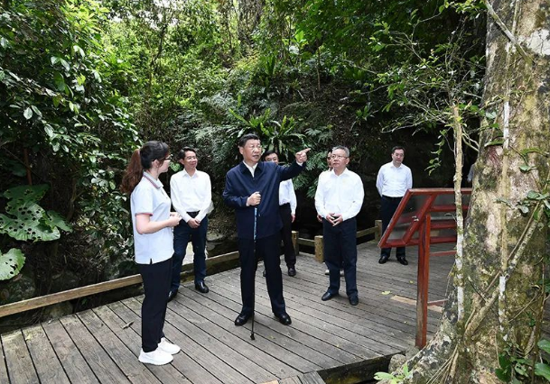 4月10日至13日,中共中央總書記、國家主席、中央軍委主席習近平在海南考察。這是11日下午,習近平在海南熱帶雨林國家公園五指山片區(qū)考察。新華社記者 謝環(huán)馳 攝