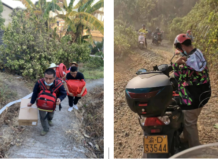 在重慶40多度的高溫天氣下,他們有的為當(dāng)?shù)鼐栀?zèng)礦泉水和食物等物資;有的加入挖隔離帶的隊(duì)伍中;有的在后方將物資運(yùn)送到統(tǒng)一堆放點(diǎn);山勢陡峭,有的則是成為“摩托幫”,將物資送到最前線。