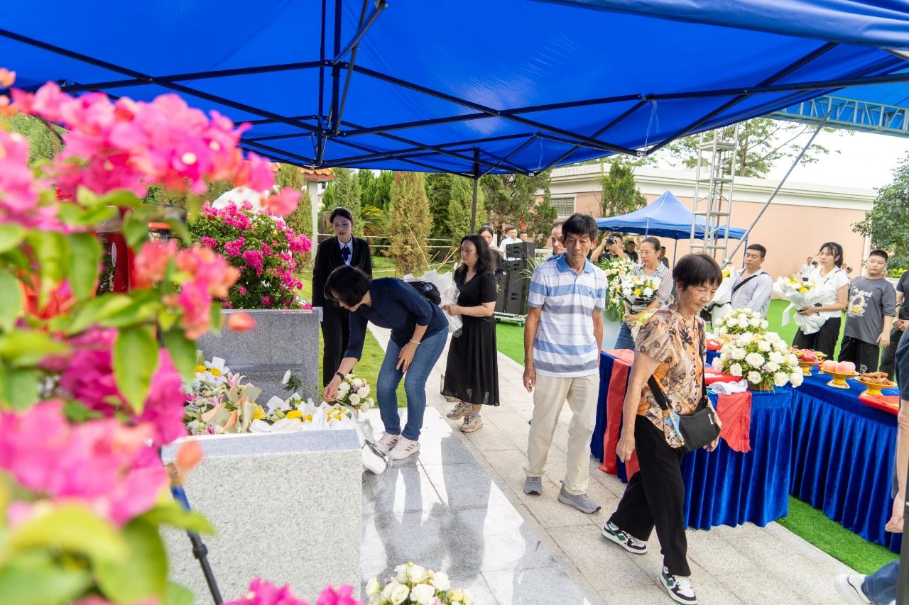 親屬代表擦拭墓碑后,在禮賓人員的引導(dǎo)下將黃旭華院士的骨灰安放進(jìn)墓穴。人們向黃旭華院士墓碑行三鞠躬禮,并敬獻(xiàn)鮮花,以簡約而莊重的儀式,送別國之脊梁。