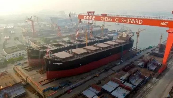 △ 中船澄西建造的7萬噸木屑船順利下水(點擊圖片查看新聞詳情)