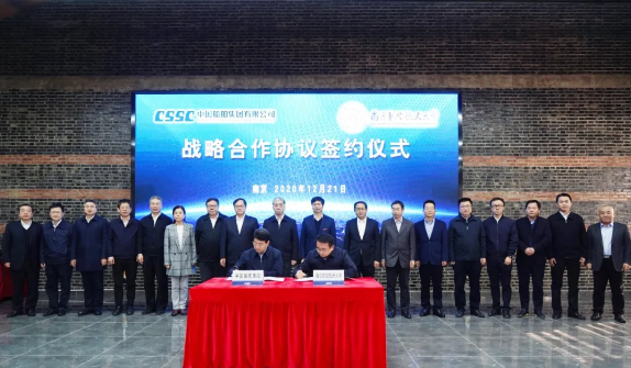 12月21日,中國(guó)船舶集團(tuán)有限公司在南京分別與南京航空航天大學(xué)、江蘇科技大學(xué)簽署戰(zhàn)略合作協(xié)議。中國(guó)船舶集團(tuán)黨組書記、董事長(zhǎng)雷凡培,黨組副書記、總經(jīng)理?xiàng)罱鸪?,黨組成員、副總經(jīng)理錢建平、杜剛,南航黨委書記鄭永安,黨委副書記、校長(zhǎng)單忠德,江科大黨委書記葛世倫,黨委副書記、校長(zhǎng)周南平等領(lǐng)導(dǎo)出席簽約儀式。