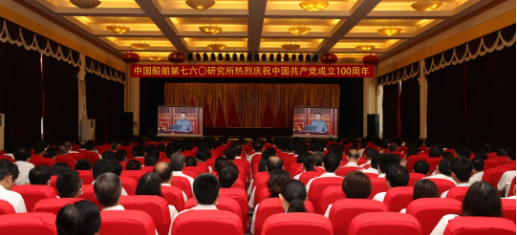 七〇二所在太湖實(shí)驗(yàn)室報(bào)告廳觀看建黨一百周年大會(huì)直播。