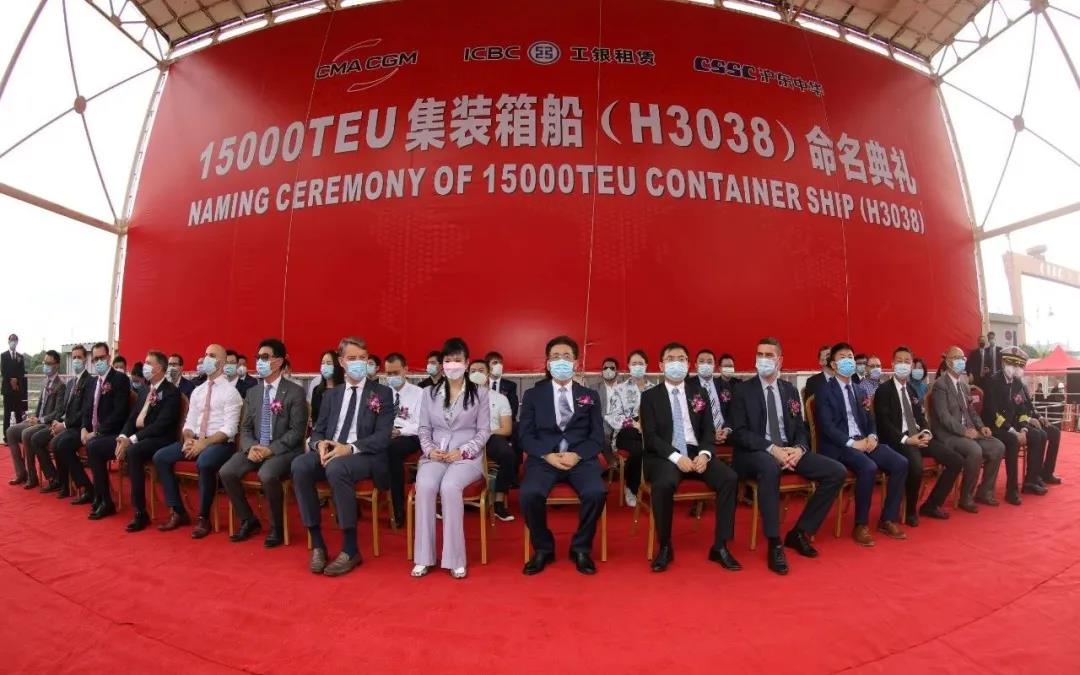 8月27日,由中國船舶集團(tuán)有限公司旗下滬東中華聯(lián)合中船貿(mào)易為法國達(dá)飛海運(yùn)集團(tuán)建造的15000TEU超大型集裝箱系列船首制船“達(dá)飛·和風(fēng)”號命名交付。這是中法兩國船海巨頭全面落實2019年中國國家主席習(xí)近平和法國總統(tǒng)馬克龍見證簽署的戰(zhàn)略合作框架協(xié)議的最新成果。同時,也標(biāo)志著“CSSC超大型箱船譜系”又添“新丁”,實現(xiàn)了對全球超大型集裝箱船發(fā)展的引領(lǐng)。