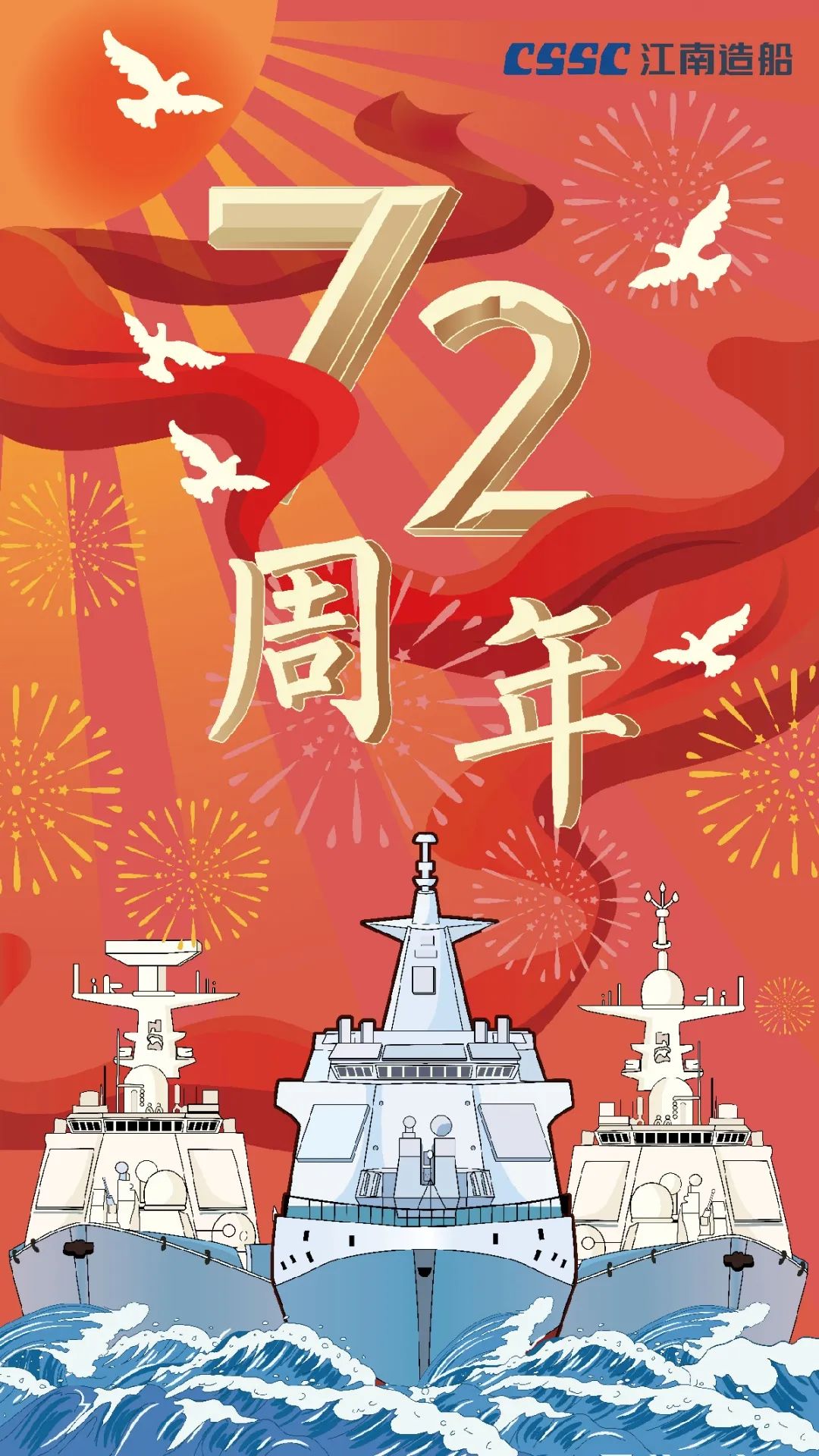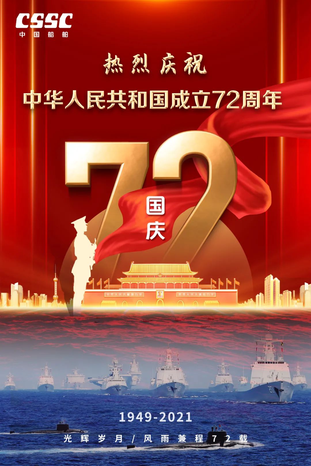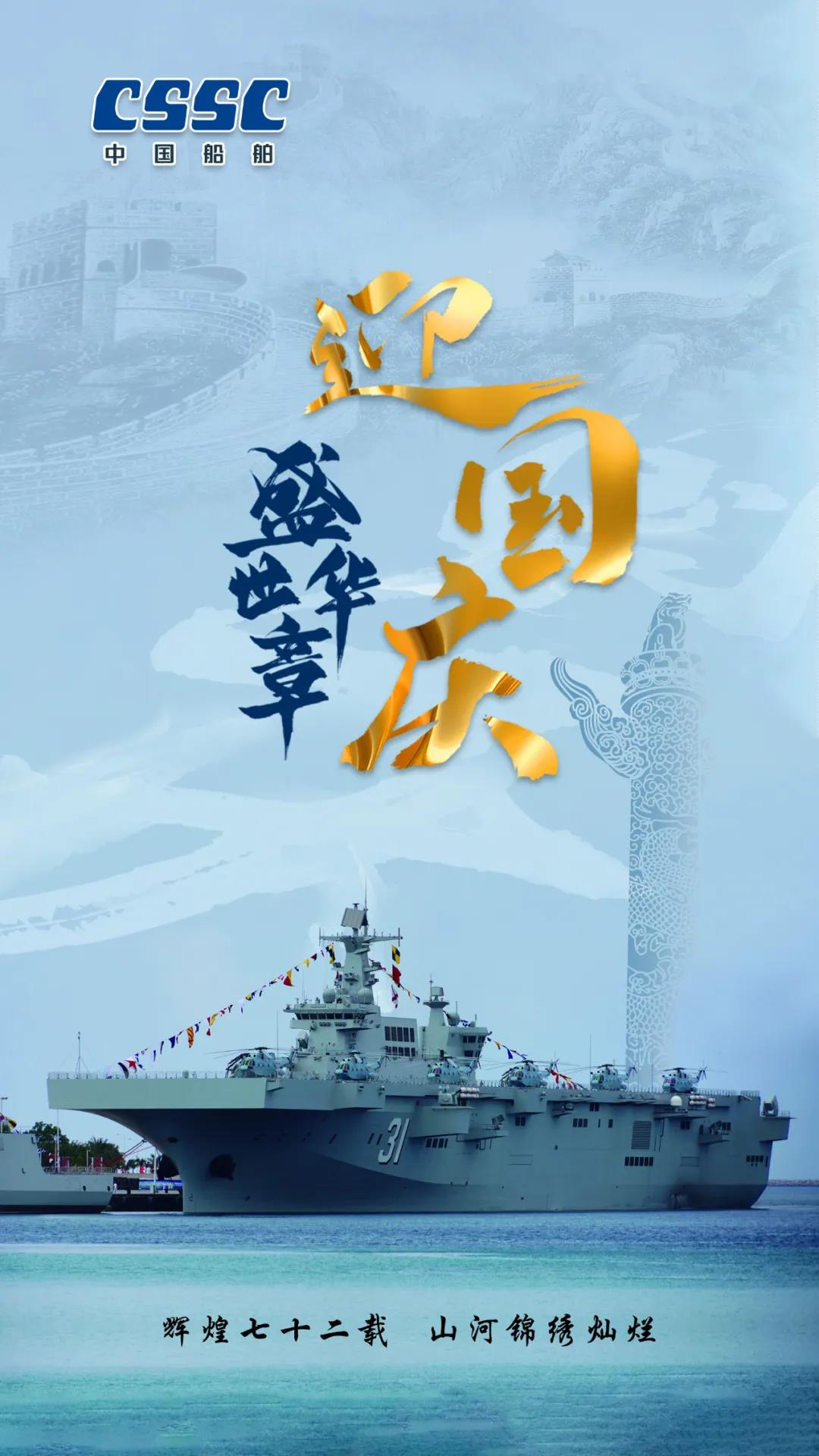 今天,我們迎來(lái)新中國(guó)72周年華誕。作為我國(guó)海軍裝備建設(shè)的主力軍,中國(guó)船舶大船集團(tuán)將不忘初心,牢記使命,堅(jiān)定貫徹海洋強(qiáng)國(guó)、制造強(qiáng)國(guó)、科技強(qiáng)國(guó)國(guó)家戰(zhàn)略,聚焦主責(zé)主業(yè)、聚力興裝強(qiáng)軍,為實(shí)現(xiàn)中華民族偉大復(fù)興的中國(guó)夢(mèng)而不懈奮斗。