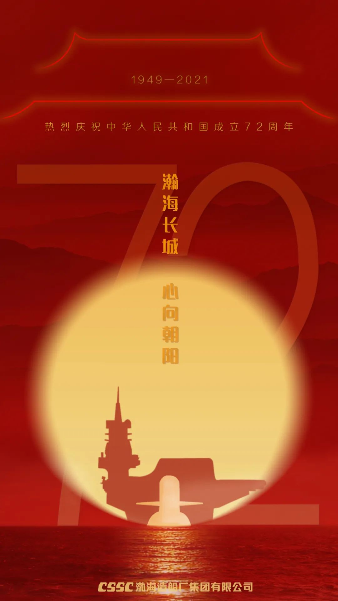 一輪紅日從國(guó)之滄海升起,捍衛(wèi)萬(wàn)里海疆的海上長(zhǎng)城深海逐浪,其后盾是強(qiáng)大的祖國(guó)母親,中國(guó)船舶渤船集團(tuán)祝新中國(guó)七十二歲生日快樂(lè)!強(qiáng)軍有我,強(qiáng)國(guó)有我!