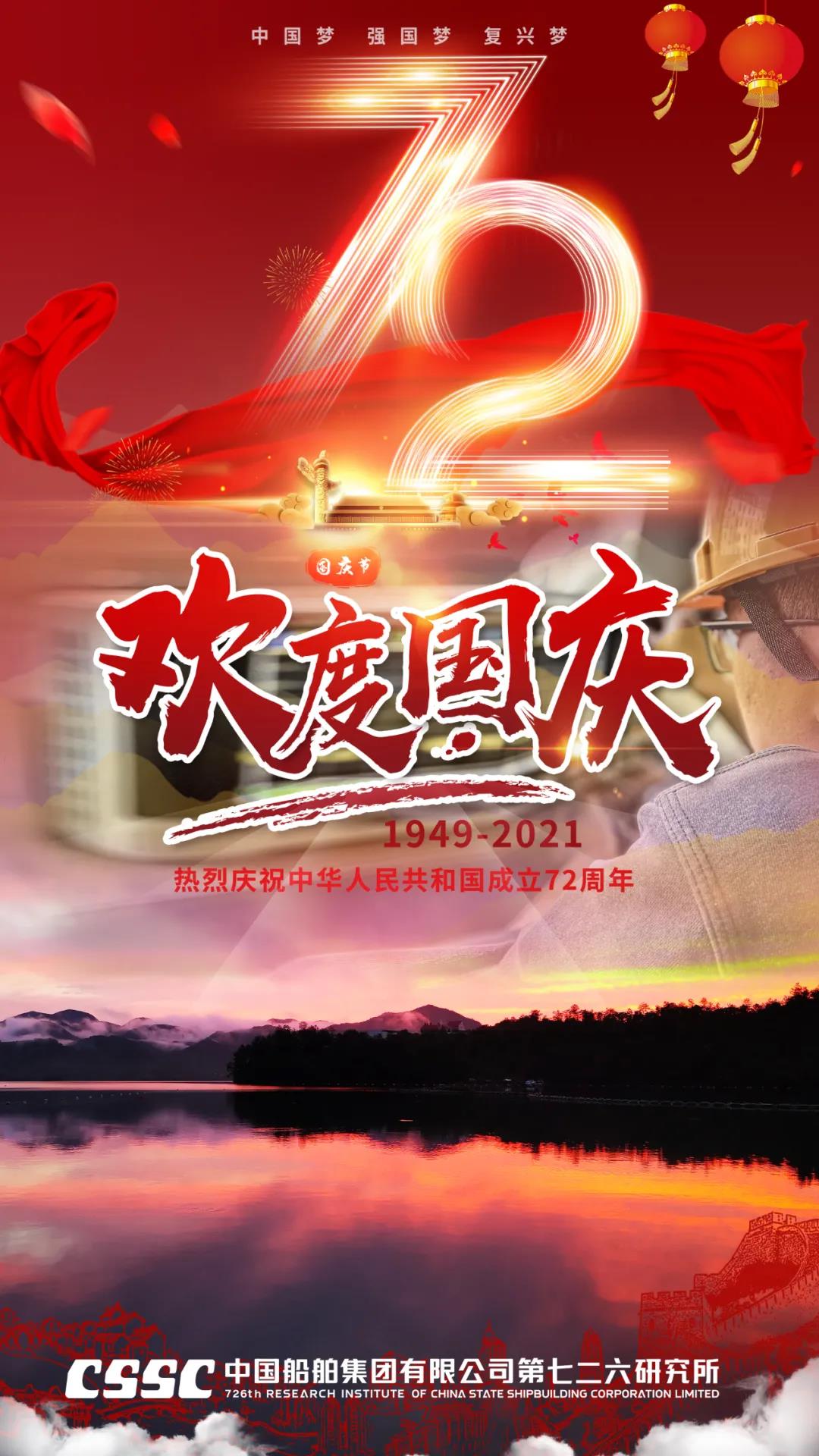 72年篳路藍(lán)縷,72年風(fēng)雨兼程,正值建黨百年之際,恰逢新中國(guó)72周年華誕,中國(guó)船舶七二六所為祖國(guó)獻(xiàn)上最真摯的祝福!祝福偉大祖國(guó)繁榮昌盛!七二六人將繼續(xù)用智慧和汗水譜寫(xiě)水聲華章,用創(chuàng)新和拼搏開(kāi)拓新時(shí)代新征程,為建設(shè)海洋強(qiáng)國(guó)貢獻(xiàn)磅礴力量!