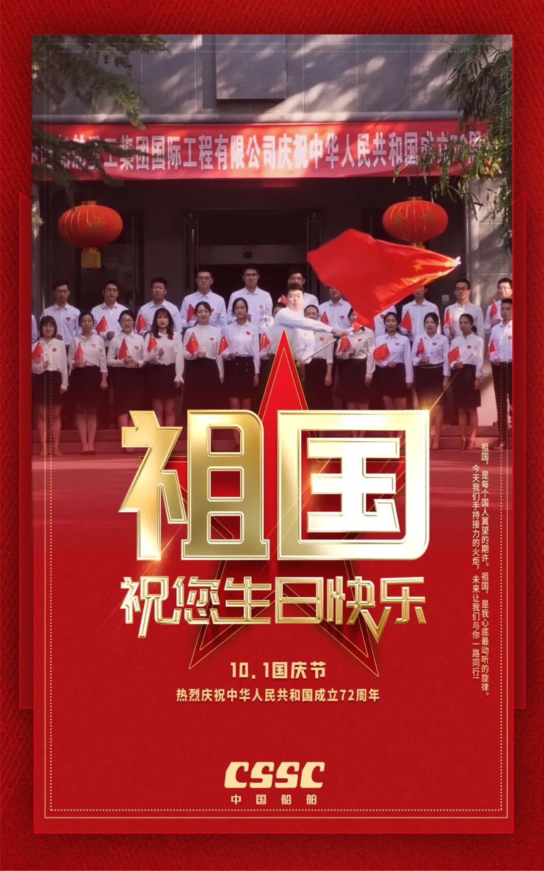 祖國(guó),是每個(gè)國(guó)人冀望的期許!祖國(guó),是船舶人心底最動(dòng)聽(tīng)的旋律!72年來(lái),新中國(guó)經(jīng)歷了風(fēng)風(fēng)雨雨;72年過(guò)去,成就了盛世風(fēng)華,中國(guó)船舶六〇二院全體員工祝新中國(guó)生日快樂(lè)!