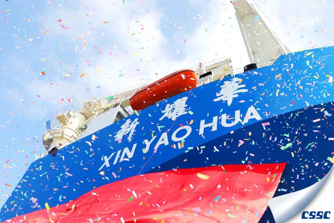 國(guó)內(nèi)第二大半潛船,中遠(yuǎn)海特8萬(wàn)噸半潛船“新耀華”號(hào)命名交付。