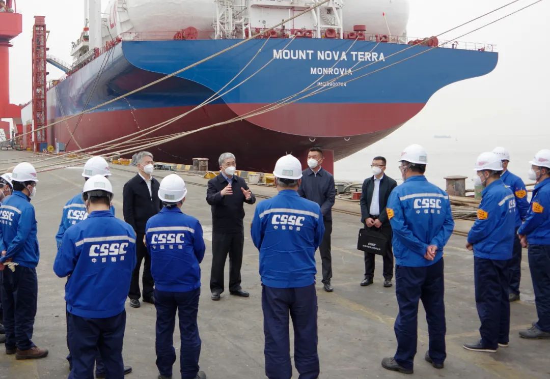 5月15日,中國船舶集團有限公司黨組書記、董事長雷凡培到集團公司旗下上海外高橋造船有限公司調(diào)研疫情防控和復工復產(chǎn)工作。中國船舶集團黨組成員、副總經(jīng)理孫偉參加調(diào)研。