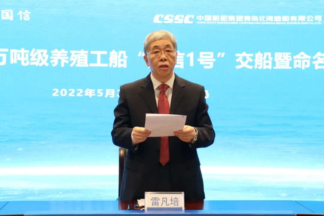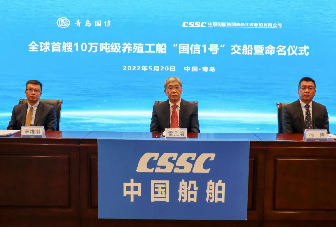 5月20日,中國船舶集團旗下青島北海造船有限公司為青島國信發(fā)展(集團)有限責(zé)任公司建造的全球首艘10萬噸級智慧漁業(yè)大型養(yǎng)殖工船“國信1號”交船命名儀式在青島舉行。中國船舶集團黨組書記、董事長雷凡培,黨組成員、副總經(jīng)理孫偉通過視頻出席儀式,山東省人民政府黨組成員、副省長凌文,青島市委副書記、市長趙豪志,中國海洋大學(xué)黨委副書記、校長于志剛,中國工程院院士麥康森等領(lǐng)導(dǎo)和嘉賓出席儀式。青島市副市長趙燕為新船命名。