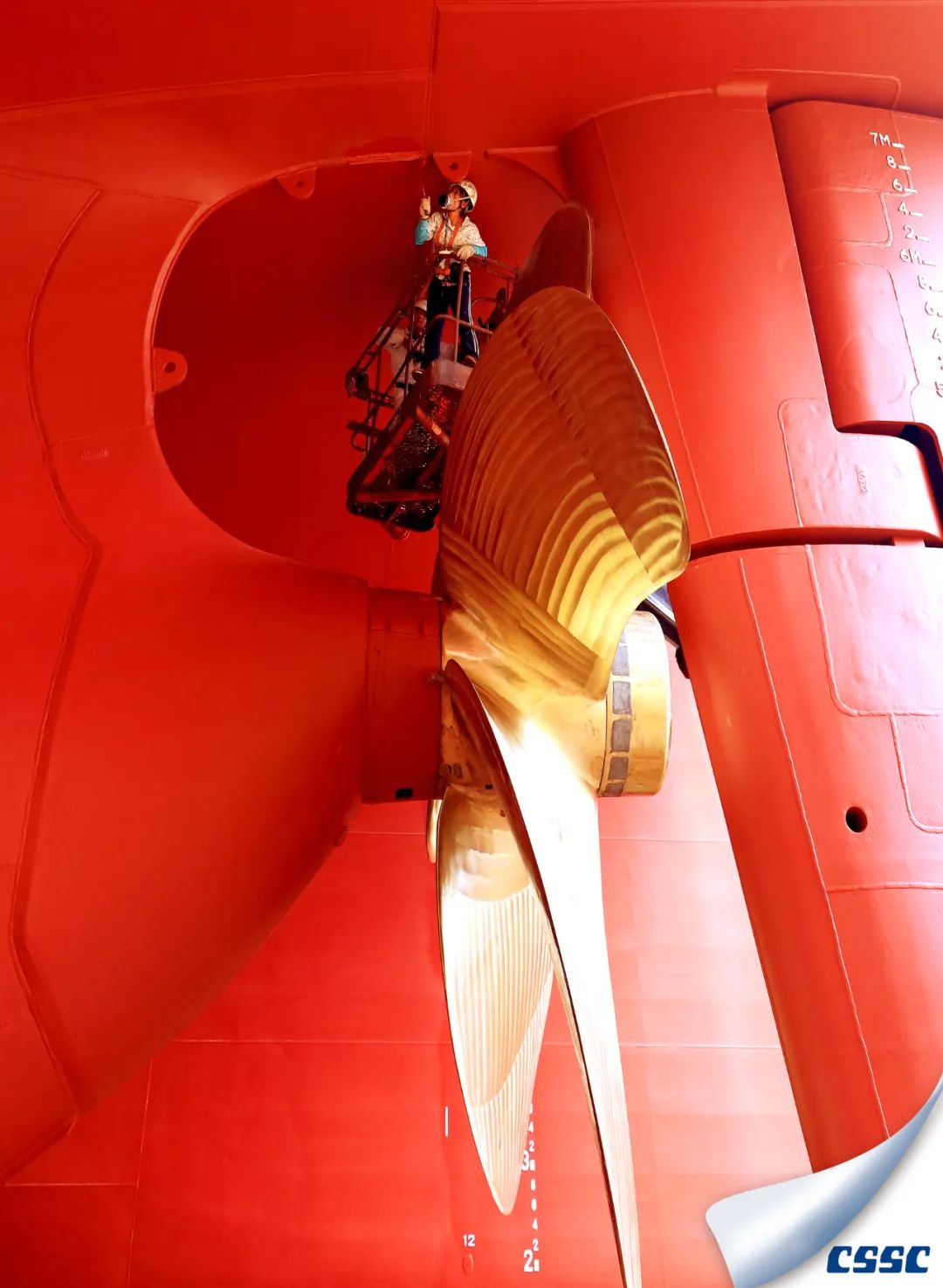新船出塢前,造船工人對船舶外貌進行補漆,以最靚麗的姿態(tài)迎接船舶出塢。