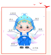 設(shè)計說明:該作品取自《山海經(jīng)》中飛魚——文瑤。相傳文瑤魚出自泰器山,此魚長著魚的身體,鳥的翅膀,飛翔東天門與西天門之上,遨游在東海和西海之間。文瑤魚乃是吉祥如意的象征,相傳其所到之處風調(diào)雨順、五谷豐登,船寶設(shè)計中加入云紋,如意紋,錢紋寓意中國造船業(yè),吉祥如意,鵬程萬里。海寶以Q版造型生動展現(xiàn)了其活潑可愛、積極熱情服務(wù)大眾的美好形象,以文瑤魚的形式化身造船工匠,體現(xiàn)我們造船人求真務(wù)實、攻堅克難、開拓創(chuàng)新、拼搏奉獻的精神力量,積極營造正能量。