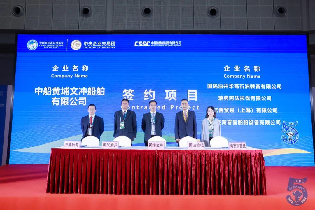 第五屆進(jìn)博會(huì)期間,中國(guó)船舶集團(tuán)旗下8家企業(yè)與18家國(guó)際合作伙伴先后進(jìn)行21個(gè)項(xiàng)目的集中簽約,累計(jì)總金額達(dá)4.5億美元,同比增長(zhǎng)205.5%。項(xiàng)目涉及柴油機(jī)組、發(fā)電機(jī)組、船用吊機(jī)、通導(dǎo)系統(tǒng)、電力推進(jìn)系統(tǒng)、數(shù)字化網(wǎng)絡(luò)設(shè)備、LNG供氣系統(tǒng)、殷瓦鋼、再液化裝置等船舶建造領(lǐng)域的各類重要配套設(shè)備,為國(guó)際交易市場(chǎng)和全球供應(yīng)鏈的日益繁榮貢獻(xiàn)中國(guó)船舶力量。