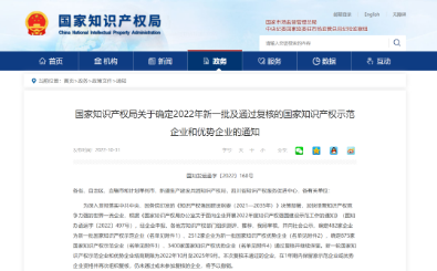 10月31日,國家知識產(chǎn)權(quán)局發(fā)布了《關(guān)于確定2022年新一批及通過復(fù)核的國家知識產(chǎn)權(quán)示范企業(yè)和優(yōu)勢企業(yè)的通知》(國知發(fā)運函字〔2022〕160號)。