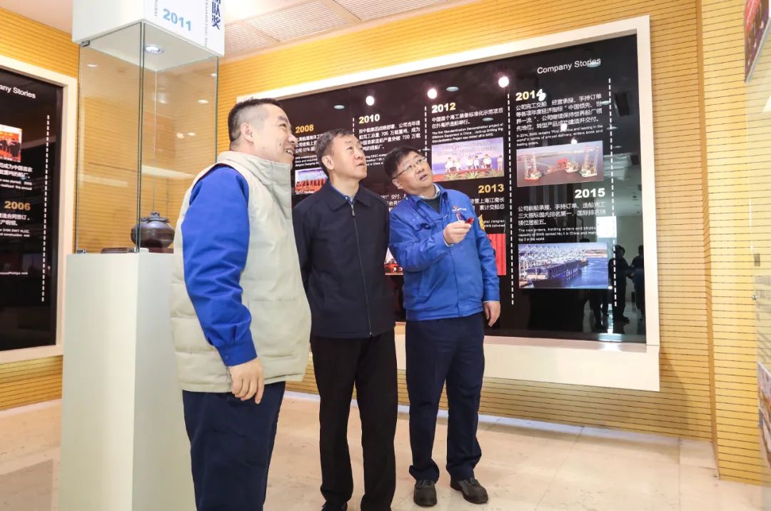 在外高橋造船展廳,溫剛聽取了外高橋造船發(fā)展歷程、戰(zhàn)略定位和主建產(chǎn)品等內(nèi)容的匯報(bào)。在國產(chǎn)大型郵輪首制船建設(shè)現(xiàn)場,溫剛聽取了建造進(jìn)度匯報(bào),并安排部署下一步工作。座談會(huì)上,溫剛聽取了外高橋造船高質(zhì)量發(fā)展戰(zhàn)略、生產(chǎn)經(jīng)營情況及黨建重點(diǎn)特色工作的匯報(bào)。