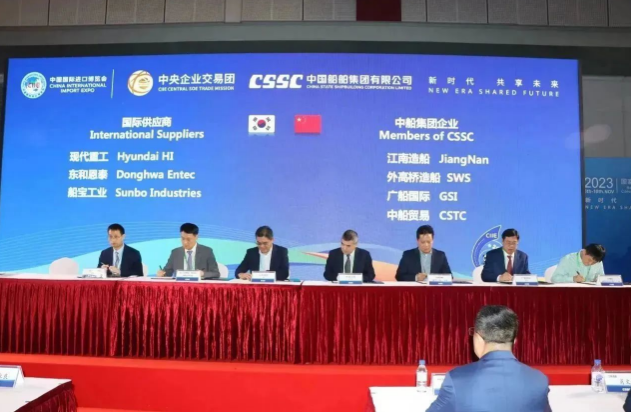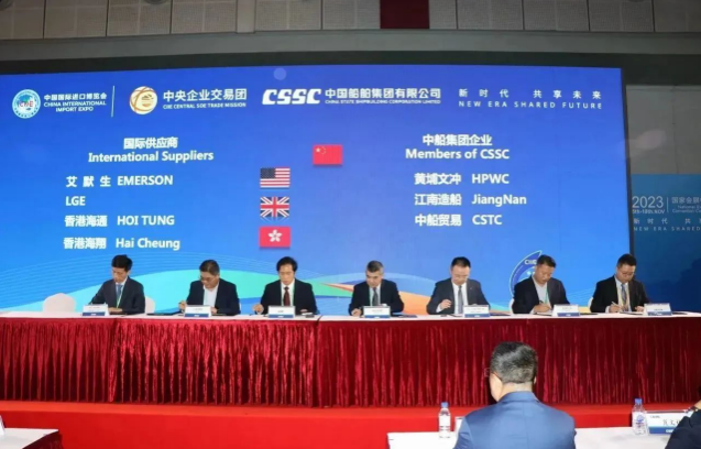 簽約儀式上,中國船舶集團(tuán)旗下7家成員單位與來自9個國家和地區(qū)的17家國際合作伙伴進(jìn)行了20個項(xiàng)目的集中簽約,累計總金額達(dá)4.82億美元,同比增長18%。具體看,交易產(chǎn)品涵蓋主機(jī)、再液化裝置、滾裝設(shè)備、液化天然氣(LNG)供氣系統(tǒng)、液貨系統(tǒng)等船舶建造領(lǐng)域的各類重要配套設(shè)備。這些簽約將有效推動國際國內(nèi)市場融合互鑒,為國際船舶交易市場的日益繁榮貢獻(xiàn)中國船舶力量。