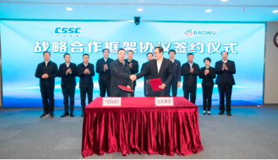 12月21日,中國(guó)船舶集團(tuán)有限公司與中國(guó)寶武鋼鐵集團(tuán)有限公司在上海簽訂戰(zhàn)略合作框架協(xié)議。中國(guó)船舶集團(tuán)黨組書(shū)記、董事長(zhǎng)溫剛,寶武集團(tuán)黨委書(shū)記、董事長(zhǎng)胡望明出席簽約儀式。中國(guó)船舶集團(tuán)黨組成員、副總經(jīng)理盛紀(jì)綱,寶武集團(tuán)黨委常委,寶鋼股份黨委書(shū)記、董事長(zhǎng)鄒繼新分別代表雙方在協(xié)議上簽字。簽約前,雙方就進(jìn)一步加強(qiáng)溝通交流、深化多領(lǐng)域合作進(jìn)行交流探討。