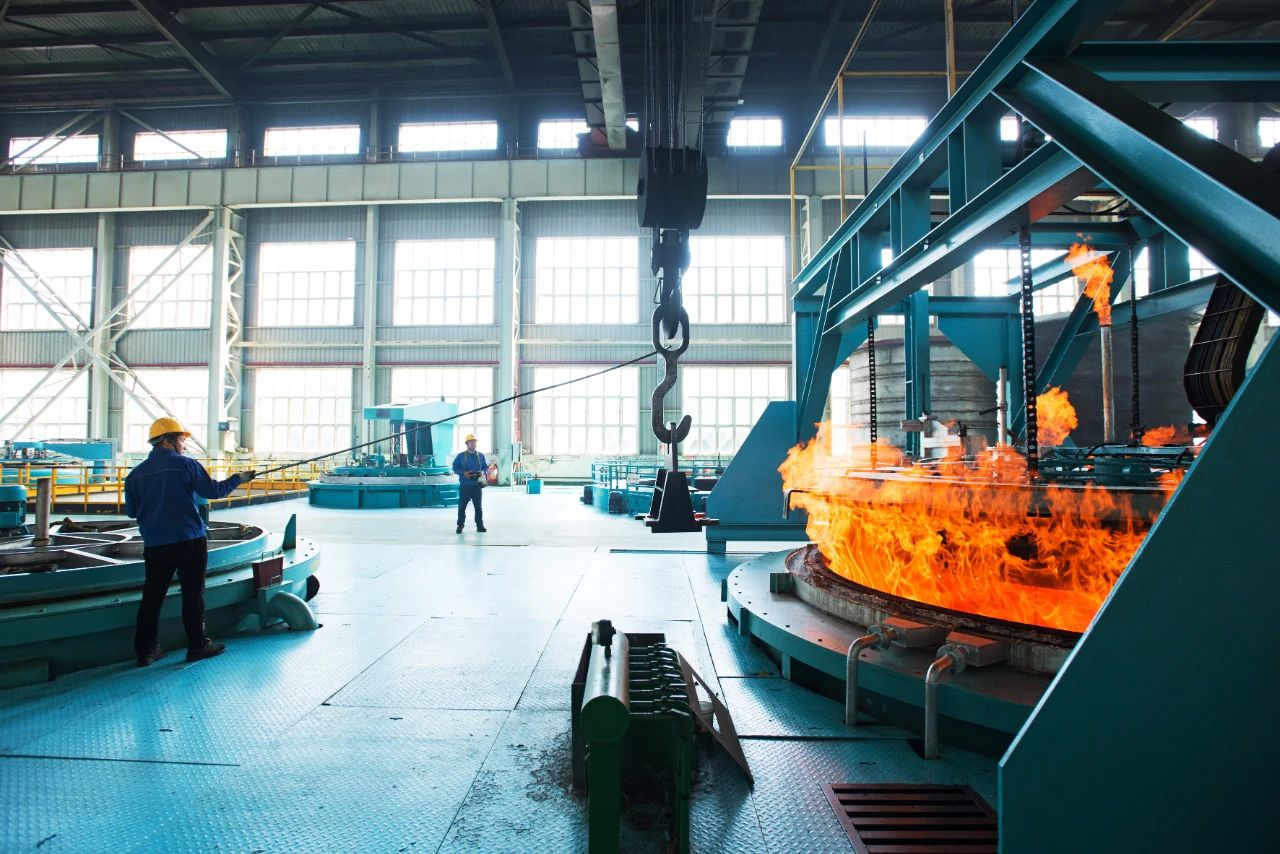 熱處理工人們面對著高達800攝氏度的高溫火焰,毫無懼色,依然穩(wěn)定地操作著設(shè)備。
