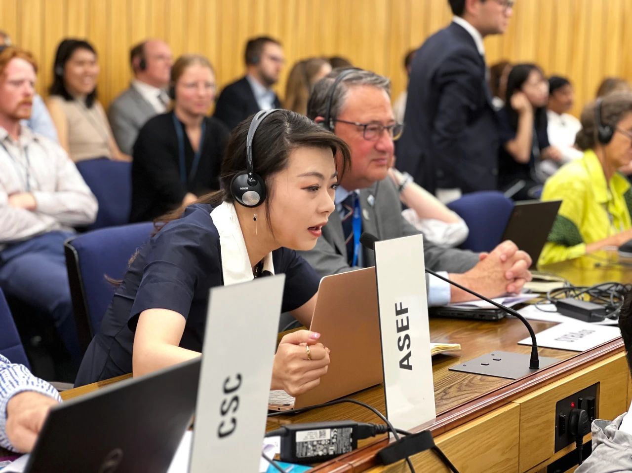 2023年7月7日,活躍造船專家聯(lián)盟(ASEF)秘書長、中國船舶集團(tuán)十一所汪璇代表船舶工業(yè)界參與國際海事組織(IMO)海洋環(huán)境保護(hù)委員會(huì)第80次(MSC107)會(huì)議。會(huì)上,汪璇代表文件MEPC80/7/7的共同提出方發(fā)言,有力支撐中國代表團(tuán)在船用碳捕集技術(shù)(OCCS)的法律地位的立場,為國際海事事務(wù)貢獻(xiàn)中國智慧,維護(hù)國家船舶工業(yè)利益。