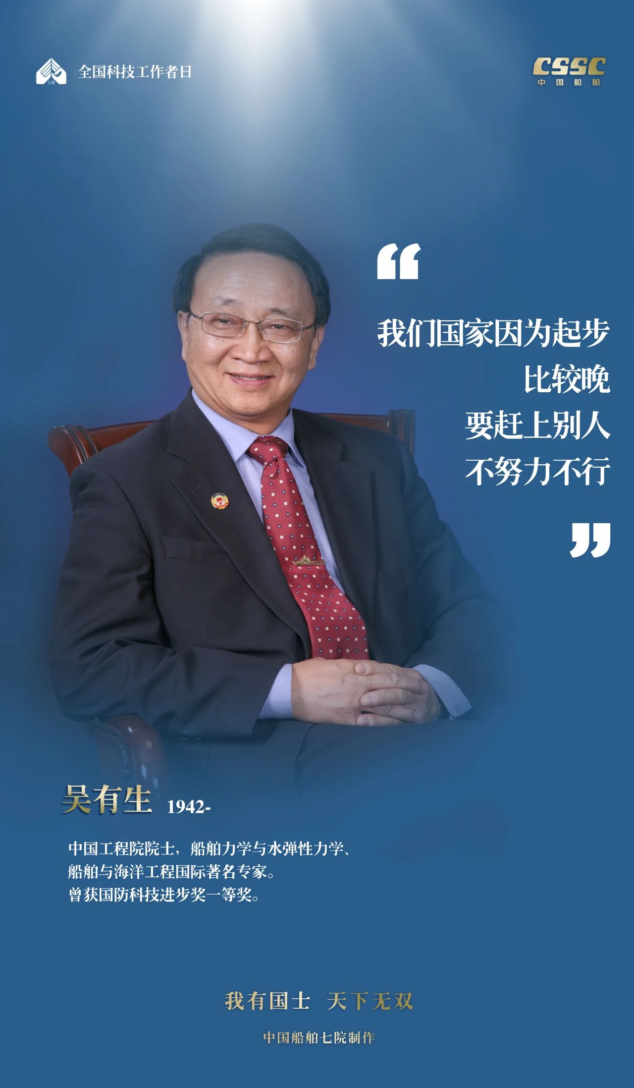 2024年5月30日,是第八個(gè)“全國(guó)科技工作者日”,一代代中國(guó)船舶人胸懷國(guó)之大者,無怨無悔勇攀科技高峰。他們的事跡也許無人知曉,他們的智慧卻是科學(xué)火種,他們用精神點(diǎn)亮希望之光,他們用勇氣探尋未來之路,他們有個(gè)共同的名字中國(guó)船舶科技工作者。