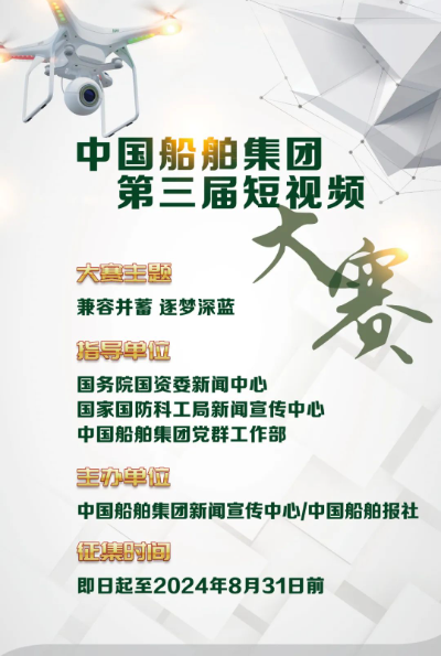 2024年是新中國成立75周年,也是全面貫徹黨的二十大精神的關(guān)鍵之年。這一年,中國船舶集團(tuán)以習(xí)近平新時代中國特色社會主義思想為指導(dǎo),全面實施“1234”高質(zhì)量發(fā)展方略,以“三贏”提質(zhì)效、以改革求突破、以創(chuàng)新促發(fā)展,全面開創(chuàng)建設(shè)世界一流船舶集團(tuán)新局面。為更加全面生動展示中國船舶人凝心聚力、砥礪奮發(fā),建設(shè)世界一流,向新中國成立75周年獻(xiàn)禮的精神風(fēng)貌與奮斗熱情,中國船舶集團(tuán)新聞宣傳中心/中國船舶報社組織開展“兼容并蓄 逐夢深藍(lán)”為主題的中國船舶集團(tuán)第三屆短視頻大賽。