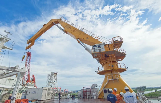 中國船舶集團旗下華南船機為“夢想”號配套重要作業(yè)設備——50噸折臂起重機,助力“夢想”起航。