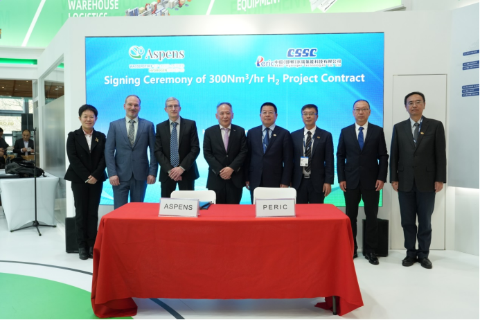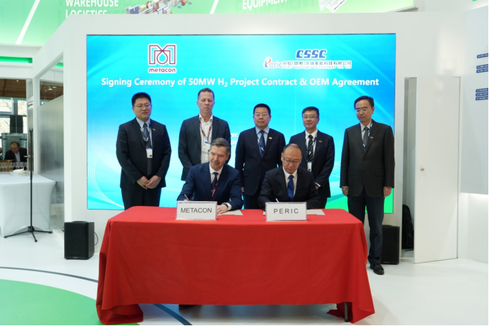 展會期間,中船集團(tuán)舉辦了電解水制氫設(shè)備、超高溫大型工業(yè)熱泵、智能裝備解決方案等30余場專題推介會,發(fā)布了全球單體最大3000立方電解水制氫設(shè)備,與德國、瑞典兩家客戶簽約電解水制氫項(xiàng)目合作協(xié)議,與全球眾多客戶進(jìn)行了技術(shù)與產(chǎn)品交流,深入推進(jìn)國際市場營銷,進(jìn)一步提升了中船集團(tuán)新興產(chǎn)業(yè)的國際影響力。此外,中船集團(tuán)還組織相關(guān)成員單位赴德國、法國等地,與林德、德希尼布和施耐德等全球知名跨國企業(yè)進(jìn)行了推介交流與合作洽談,進(jìn)一步鞏固合作關(guān)系,為后續(xù)深化合作奠定基礎(chǔ)。同時,組織與中國國機(jī)集團(tuán)、國家能源集團(tuán)等中國企業(yè),就展覽展會、品牌宣傳、國際項(xiàng)目合作等方面進(jìn)行交流,攜手拓展國際市場。