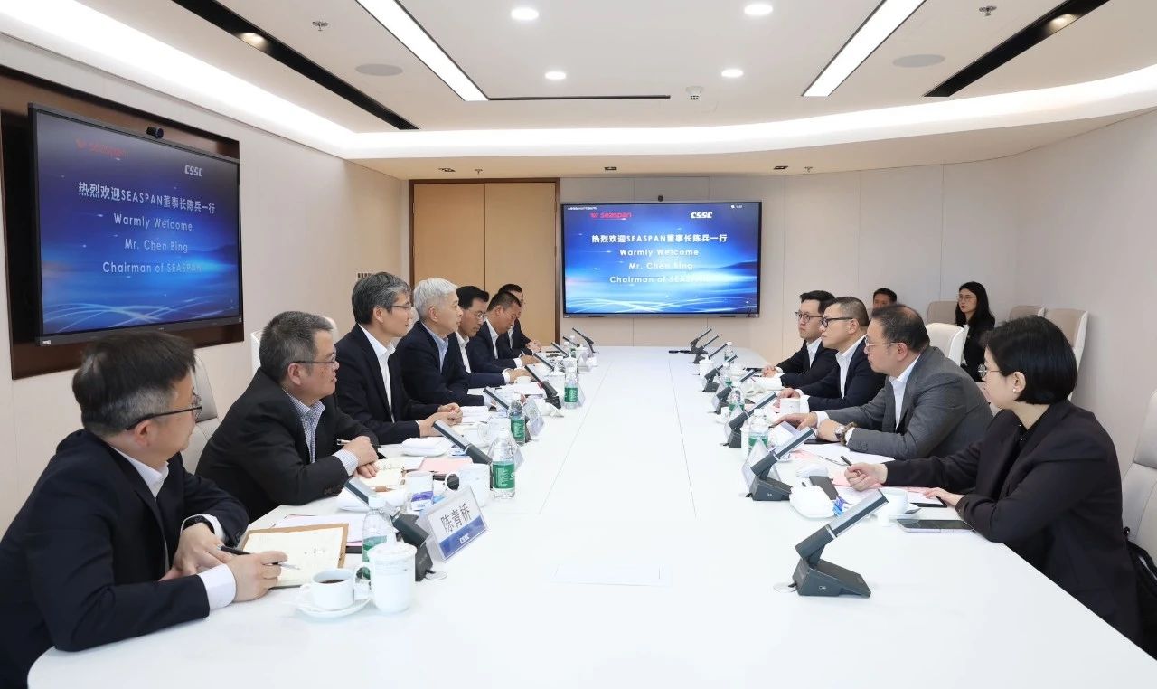 徐鵬對陳兵一行的來訪表示歡迎,并感謝Seaspan公司對中船集團(tuán)的長期信任與支持。徐鵬表示,中船集團(tuán)將持續(xù)提升自身綜合能力,努力為客戶提供更優(yōu)質(zhì)的產(chǎn)品和服務(wù)。Seaspan公司是全球最大的獨(dú)立集裝箱船租賃船東公司,與中船集團(tuán)在長期合作中結(jié)下了深厚友誼。未來,希望雙方建立常態(tài)化溝通交流機(jī)制,在船舶建造與升級(jí)改造、國際船海市場拓展、船舶全生命周期運(yùn)維、綠色能源開發(fā)等方面持續(xù)深化進(jìn)一步合作,共同為行業(yè)持續(xù)健康發(fā)展作出應(yīng)有貢獻(xiàn)。