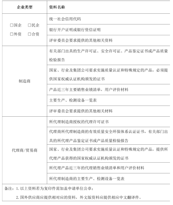 4.對于提供審核資料弄虛作假、被國家相關(guān)部門、同行業(yè)央企納入黑名單或列為不誠信人的企業(yè)及企業(yè)法人不予準(zhǔn)入。