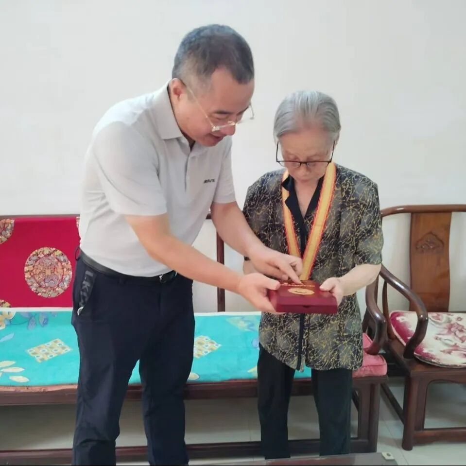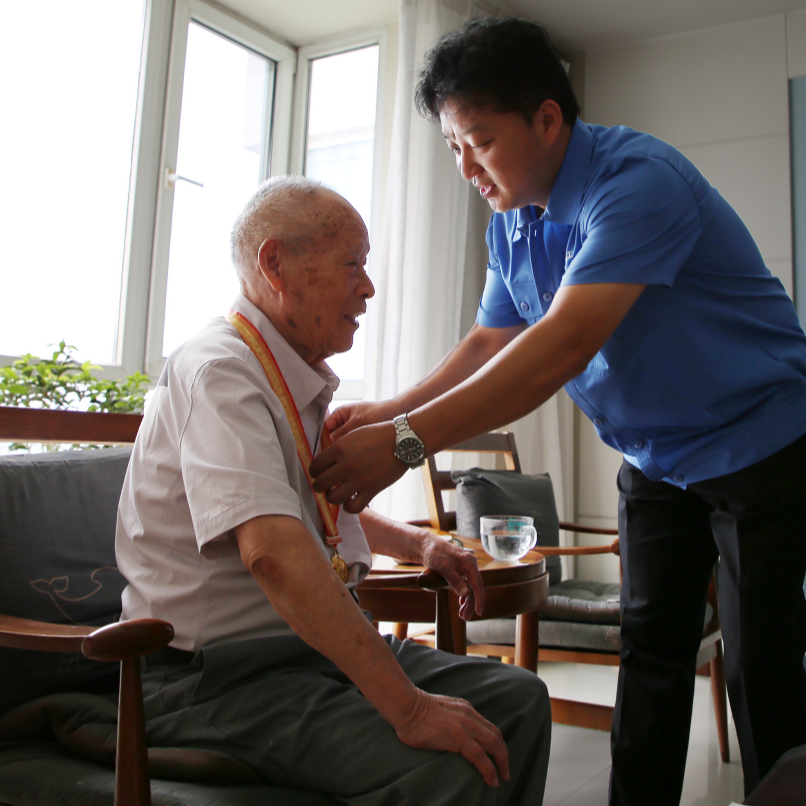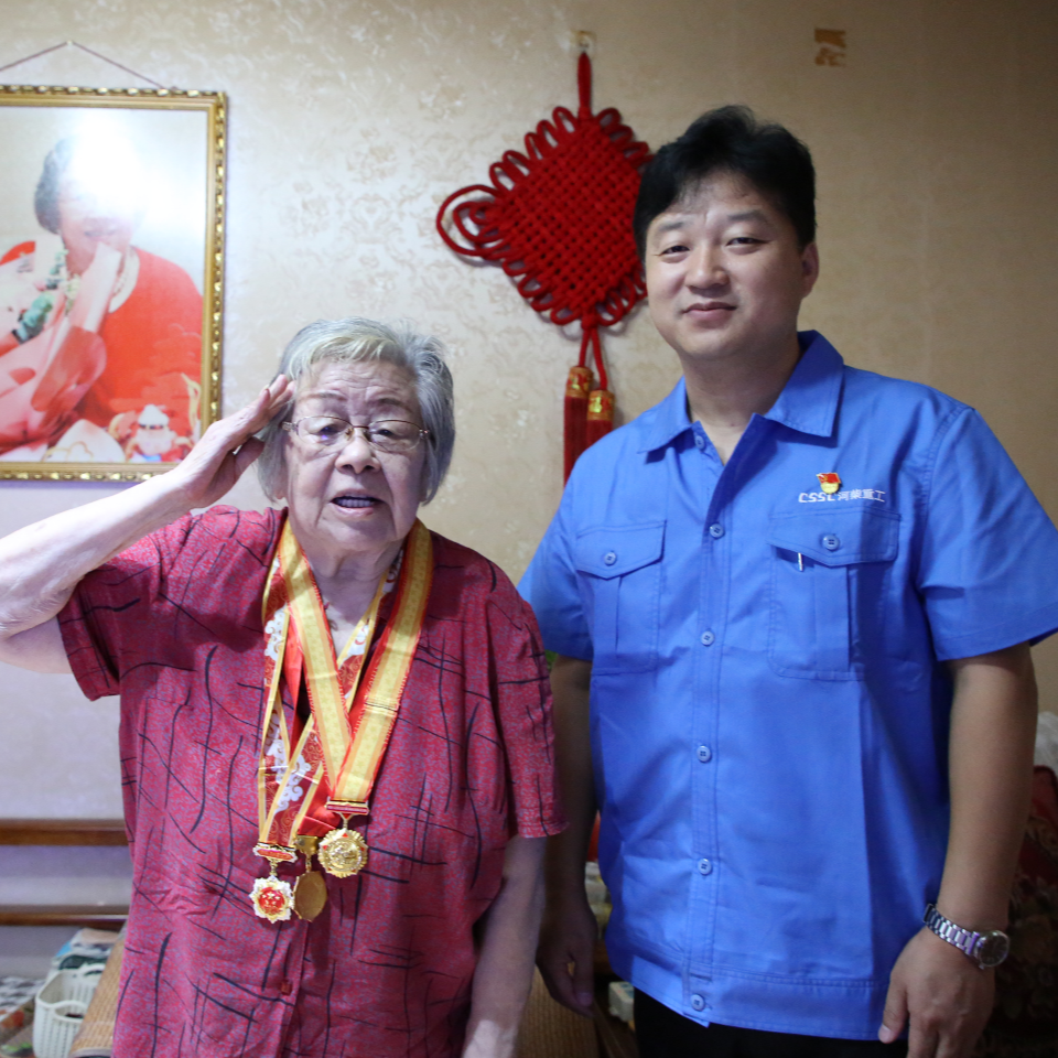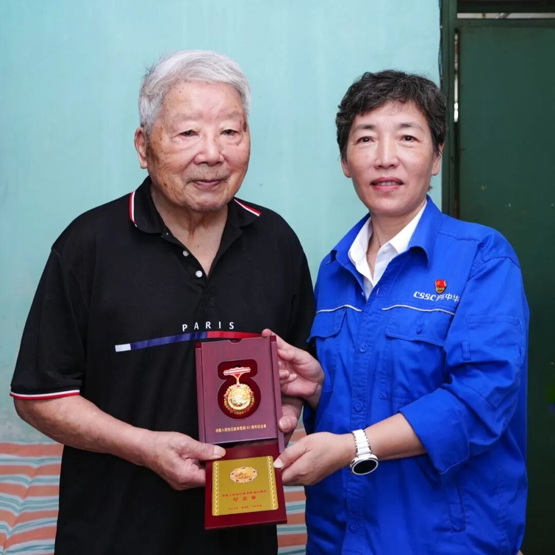 在紀(jì)念中國人民抗日戰(zhàn)爭(zhēng)暨世界反法西斯戰(zhàn)爭(zhēng)勝利80周年之際,中國船舶集團(tuán)有限公司黨組副書記、董事賈海英走訪慰問抗戰(zhàn)老兵焦英杰,頒發(fā)“中國人民抗日戰(zhàn)爭(zhēng)勝利80周年”紀(jì)念章,并代表集團(tuán)公司黨組向他致以崇高敬意和誠摯問候。