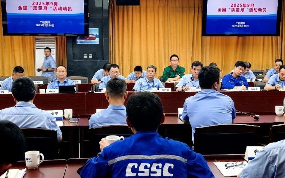 廣船國際召開2025年“質(zhì)量月”活動動員會,通過宣教結合、查改并舉的方式,從質(zhì)量意識教育培訓、質(zhì)量提升專項行動、質(zhì)量文化建設三個方面,策劃部署了質(zhì)量門建設實施要求宣貫、“十五五”質(zhì)量專項規(guī)劃研討、“黨建+質(zhì)量”研討交流等23個活動項目,持續(xù)優(yōu)化質(zhì)量管理體系建設,深入推進精細化質(zhì)量管理提升。