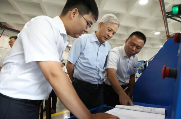 徐鵬深入科研生產(chǎn)一線,調(diào)研了相關(guān)重點(diǎn)車間及生產(chǎn)線,聽取了相關(guān)單位負(fù)責(zé)人關(guān)于生產(chǎn)經(jīng)營、科技創(chuàng)新、人才培養(yǎng)、戰(zhàn)略規(guī)劃、黨的建設(shè)等方面情況匯報,對相關(guān)單位改革發(fā)展取得的成績表示肯定,也指出發(fā)展存在的問題和面臨的形勢。調(diào)研期間,徐鵬還主持召開職工群眾代表座談會,詳細(xì)了解一線職工群眾急難愁盼和基層亟待解決的突出問題,并現(xiàn)場解答部分意見建議。