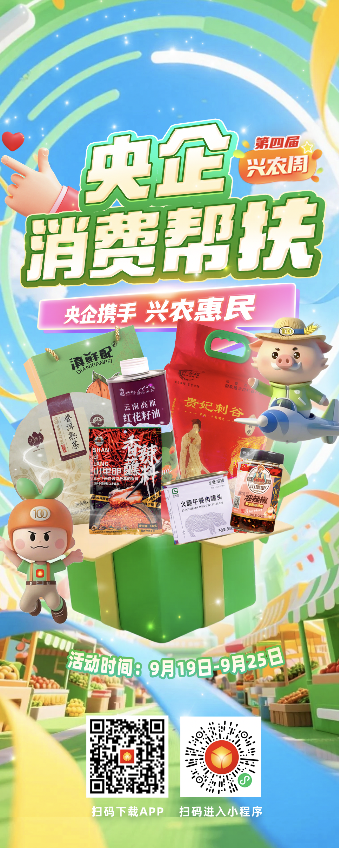 本屆“央企消費(fèi)幫扶興農(nóng)周”活動(dòng)時(shí)間為9月19日~9月25日,發(fā)布了央企消費(fèi)幫扶電商平臺(tái)助農(nóng)大數(shù)據(jù),線上開展限時(shí)秒殺、拼團(tuán)采購、跨店滿減等促銷活動(dòng),線下舉辦特色農(nóng)產(chǎn)品展銷會(huì)、創(chuàng)辦非遺等特色主題展,再搭配包括現(xiàn)場簽約、展位打卡等在內(nèi)的活動(dòng),共同打造了一場“能看、能嘗、能買、能玩”的“興農(nóng)”盛宴。