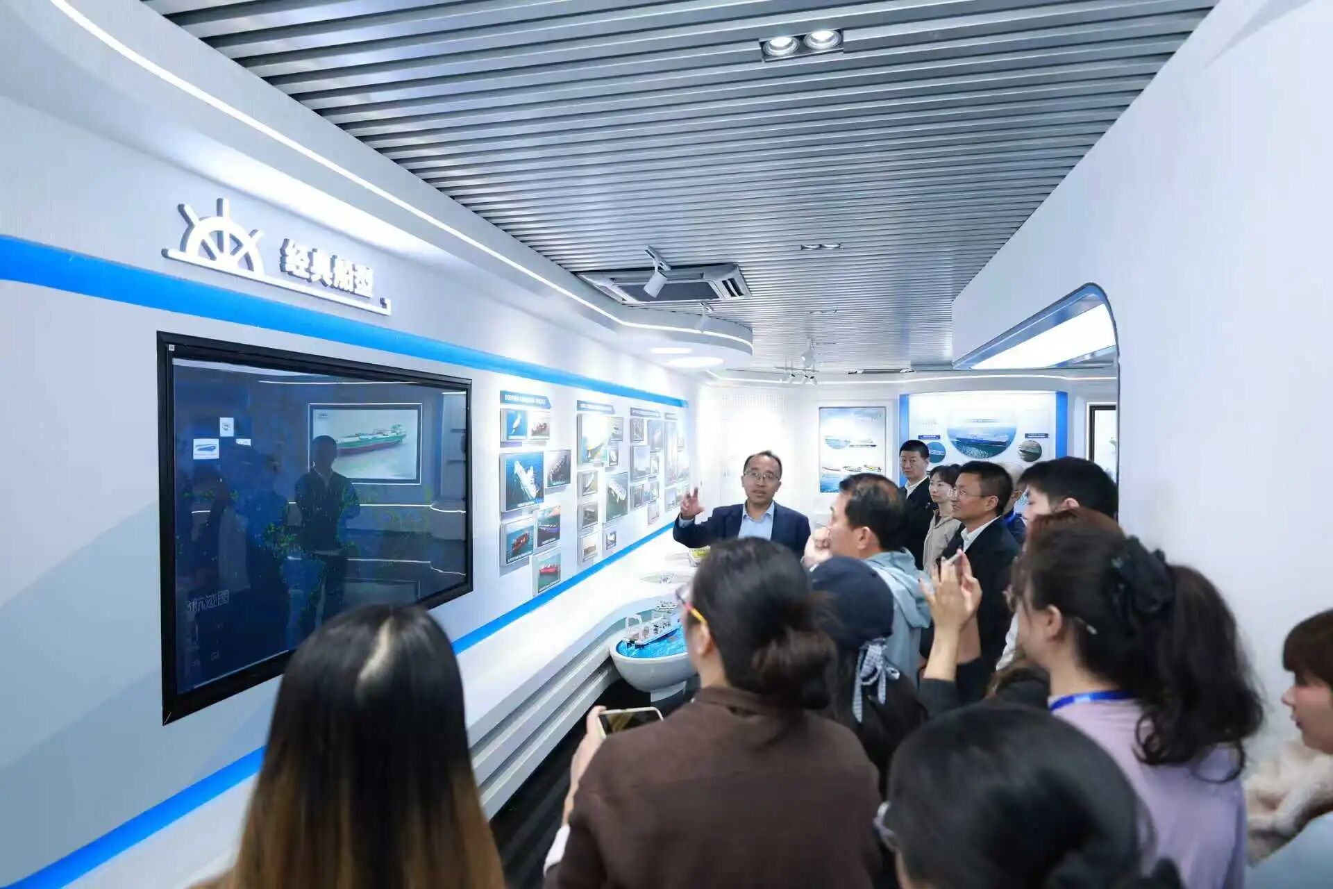 媒體代表團先后參觀了上船院展廳及智能船舶實驗室,并聽取了相關(guān)專家對院船型品牌與低碳零碳技術(shù)發(fā)展、數(shù)智賦能船舶研發(fā)設(shè)計等專題的講解,感受著上船院深厚的科技底蘊和創(chuàng)新的澎湃動力。