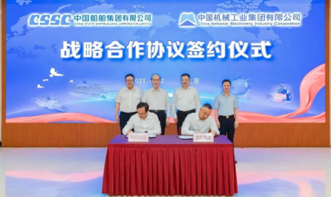 6月22日,中國(guó)船舶集團(tuán)有限公司與中國(guó)機(jī)械工業(yè)集團(tuán)有限公司在京簽署了戰(zhàn)略合作協(xié)議。中國(guó)船舶集團(tuán)黨組書(shū)記、董事長(zhǎng)雷凡培,黨組副書(shū)記、總經(jīng)理?xiàng)罱鸪?,黨組成員、副總經(jīng)理錢(qián)建平,國(guó)機(jī)集團(tuán)黨委書(shū)記、董事長(zhǎng)張曉侖,黨委副書(shū)記、總經(jīng)理吳永杰,黨委常委、副總經(jīng)理白紹桐出席了簽約儀式。楊金成、吳永杰分別代表雙方簽約。