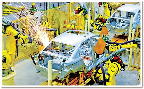 圖為東風旗下神龍公司的自動化生產(chǎn)線