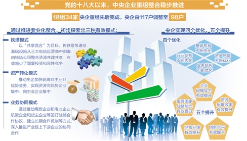 行業(yè)結(jié)構(gòu)不斷優(yōu)化。中央企業(yè)重組推動行業(yè)集中度有效提升,并通過去產(chǎn)能、強(qiáng)創(chuàng)新等途徑,帶動所在行業(yè)結(jié)構(gòu)優(yōu)化、轉(zhuǎn)型升級。