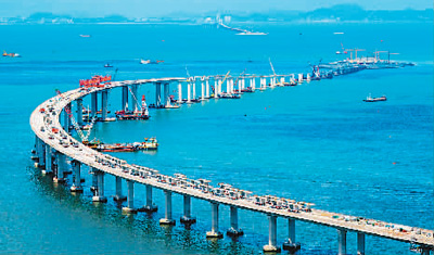 港珠澳大橋主體工程全線貫通,是中國橋梁屹立世界“橋梁之巔”的縮影。世界最長跨海大橋、跨度最大的公鐵兩用橋、首座公鐵兩用跨海大橋……近年來,中國橋梁界為世界橋梁創(chuàng)造了眾多的“世界第一”。數(shù)據(jù)顯示,目前世界排名前10位的跨海長橋中,中國占據(jù)6座。而在建造技術(shù)上,中國已擁有千米級斜拉橋設(shè)計施工成套技術(shù)、跨海特大跨徑鋼箱梁懸索橋關(guān)鍵技術(shù)等多項尖端技術(shù)。