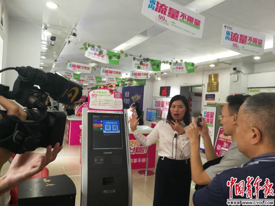 中國(guó)電信廣西公司一位小CEO在給媒體講解當(dāng)?shù)貭I(yíng)業(yè)廳的日常工作。中國(guó)青年報(bào)?中青在線記者 潘圓/攝