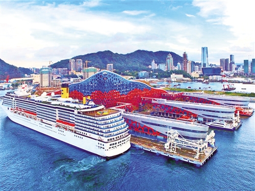 圖為蛇口太子灣郵輪母港??康膰?guó)際郵輪。(唐蜀全 攝)