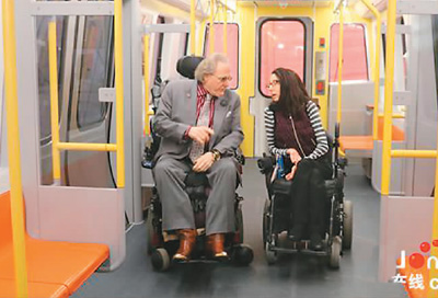 “現(xiàn)在,平生第一次,我不再需要別人幫我進到車廂里了。這種獨立性對我來講至關(guān)重要?!瘪R薩諸塞州波士頓地鐵老乘客懷特先生坐著輪椅在車廂里溜達了一圈,對地鐵新車充滿期待。當?shù)貢r間4月3日,在美國波士頓舉行的橙線地鐵模型車首次展出活動上,美國民眾感受了來自中國的地鐵車廂。更寬敞、美觀,設(shè)計更加人性化,讓美國民眾為之點贊。“車廂內(nèi)外側(cè)都有專門的按鈕,可以讓坐在輪椅里的人在上、下車的時候直接啟動車廂底部的專用輪椅車平板,通行完全無障礙。”懷特先生說。