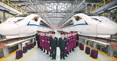 12月4日,西成高鐵首發(fā)乘務(wù)班組在中國鐵路成都局集團有限公司成都動車段亮相。(薛玉斌 攝)