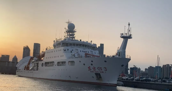“東方紅3”號(hào)是我國(guó)自主創(chuàng)新研發(fā)的新一代深海大洋綜合科學(xué)考察實(shí)習(xí)船,2013年由教育部立項(xiàng)建設(shè),2019年6月交付使用,是國(guó)內(nèi)首艘、國(guó)際上第四艘獲得DNV GL簽發(fā)的船舶水下輻射噪聲最高等級(jí)——靜音科考級(jí)(SILENT-R)證書(shū)的海洋綜合科考船,也是世界上獲得這一等級(jí)證書(shū)排水量最大的海洋綜合科考船。