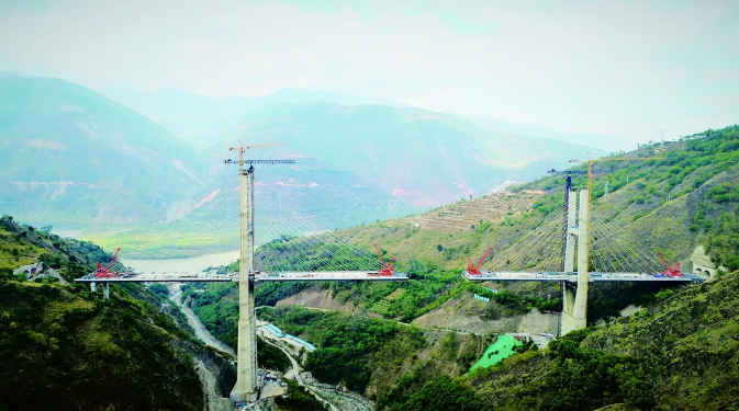????近日,由武船集團承建的云南格巧高速雙河特大橋巧家側邊跨順利實現(xiàn)合龍。雙河特大橋橋梁全長705.6米,是目前云南省最大的高低塔組合梁斜拉橋。