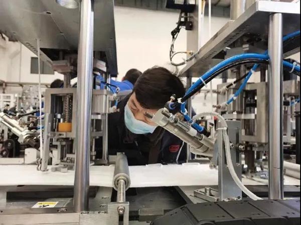 ????就在幾天前,鵬力智造已交付首批口罩機(jī)及防護(hù)服壓條機(jī)。此次交付的N95口罩機(jī)由鼻梁焊接機(jī)、打片機(jī)、耳帶焊接機(jī)三部分構(gòu)成,可生產(chǎn)多種類型折疊口罩,單臺(tái)設(shè)備每分鐘最高生產(chǎn)60只口罩。