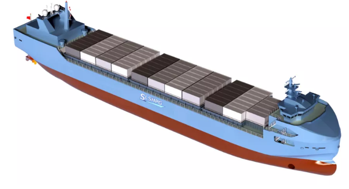 智慧航海(青島)科技公司的300TEU(國際標(biāo)準(zhǔn)集裝箱)智能集裝箱船“智飛”號(hào)