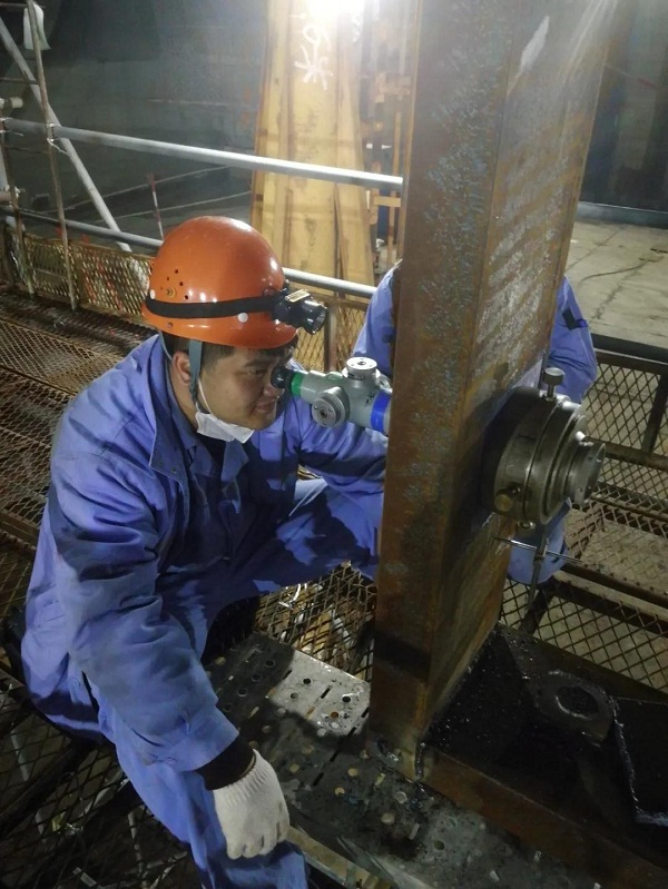 為確保VLCC照光工作順利完成,大船集團(tuán)輪機(jī)工藝小組,提前一周就進(jìn)入“作戰(zhàn)”狀態(tài),他們每天堅持深入現(xiàn)場,從細(xì)小處入手,檢查每一個可能影響軸舵系施工質(zhì)量的隱患,加班加點(diǎn)成了工作的常態(tài)。