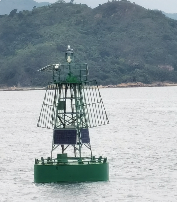 △ 國(guó)內(nèi)首個(gè)船舶大氣污染物監(jiān)測(cè)專用浮標(biāo)