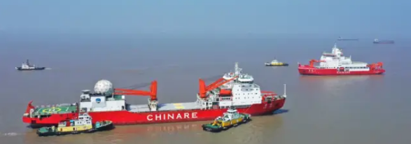 “雪龍2”號是我國首艘自主建造的極地科學(xué)考察破冰船,由中國船舶集團(tuán)旗下七〇八所設(shè)計、江南造船建造,于2019年7月11日正式交付,總長122.5米,設(shè)計排水量接近14000噸,是一艘滿足無限航區(qū)要求、具備全球航行能力,能夠在極區(qū)大洋安全航行的具備國際先進(jìn)水平的極地科學(xué)考察破冰船。